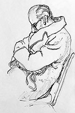 Ken's wife Barbara soon found she had an artistic tallent of her own. She would sit in on LSO rehersals and sketch the musicains in action, often working on concert programmes or any paper availible at the time.