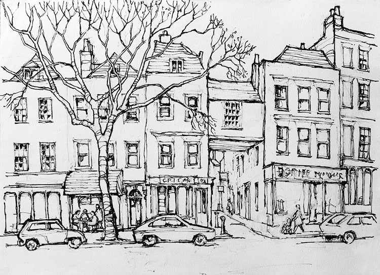 Hampstead was an ideal home for Ken, being known for it's high number of creative and intellectual residents. He made many sketches and paintings of places in Hampstead including Kenwood, Church Row, Hampstead High Street, Perrins Court.